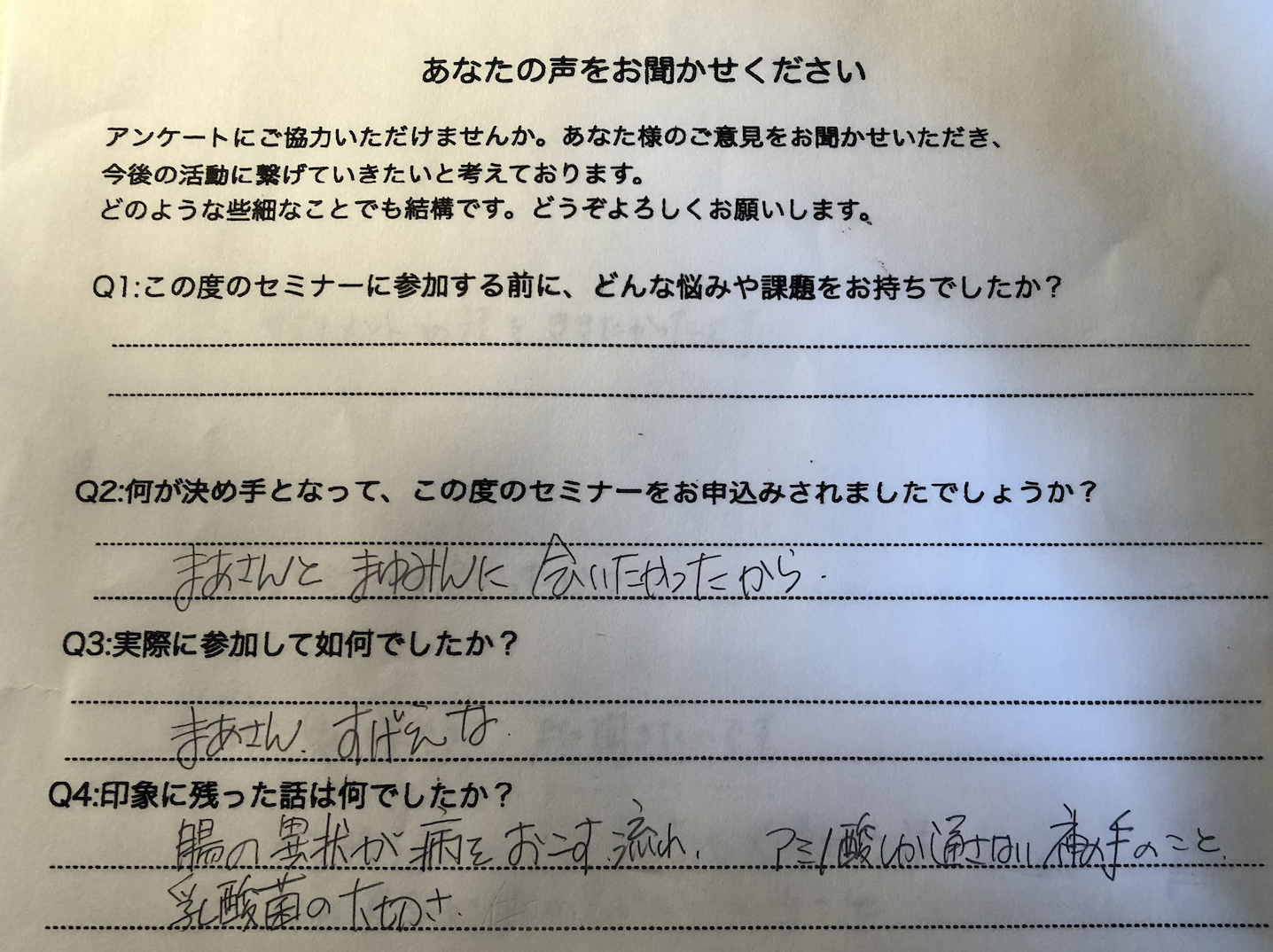 Hakkousha「発酵からみえる腸と命のあり方」お話会のご感想