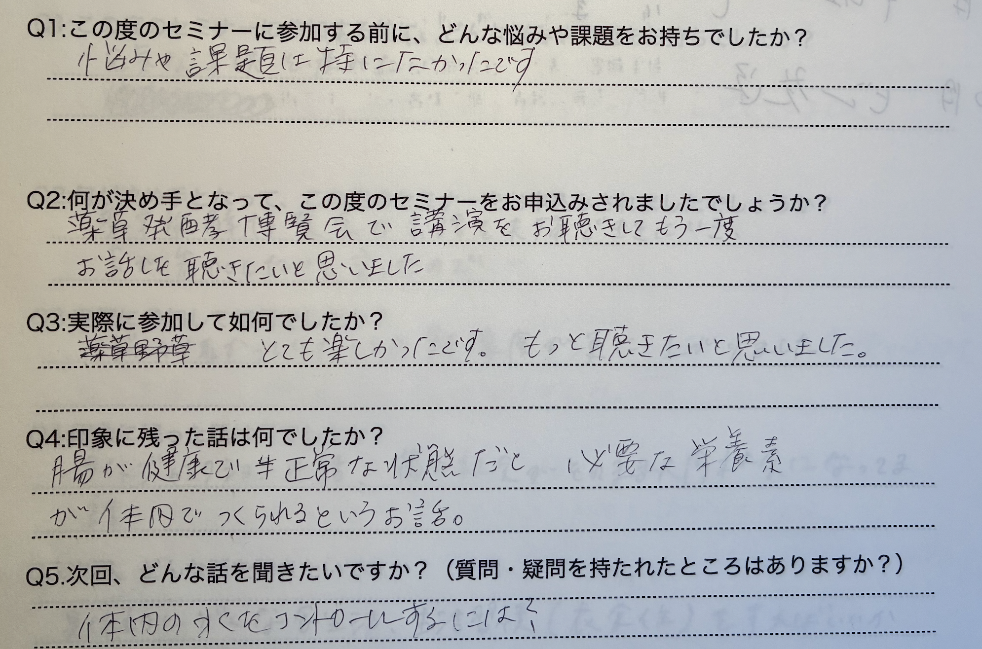 2025年9月20日(土) 【発酵からみえる腸と命のあり方お話会】にご参加くださいました方のご感想です♡