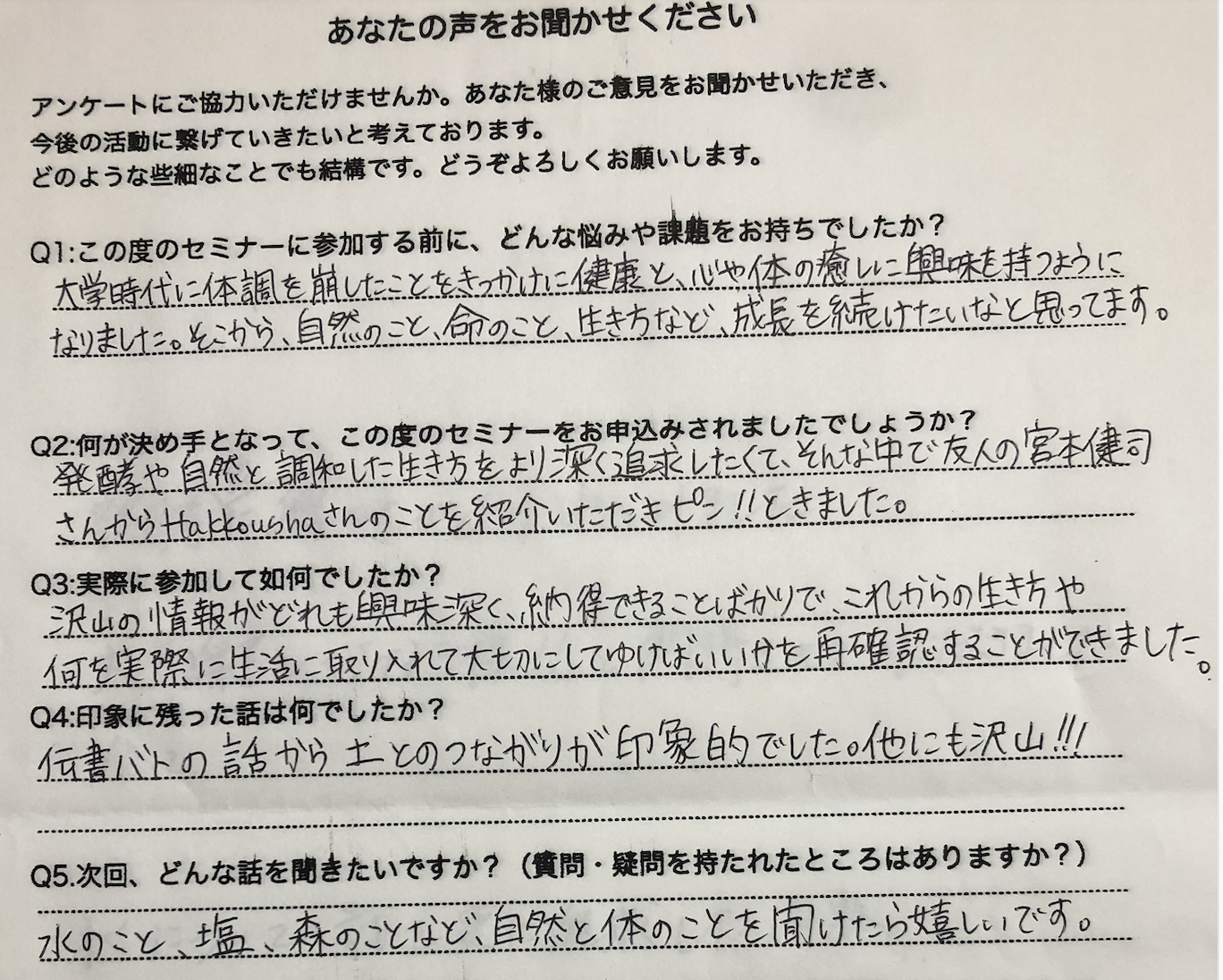 Hakkousha「発酵からみえる腸と命のあり方」お話会のご感想