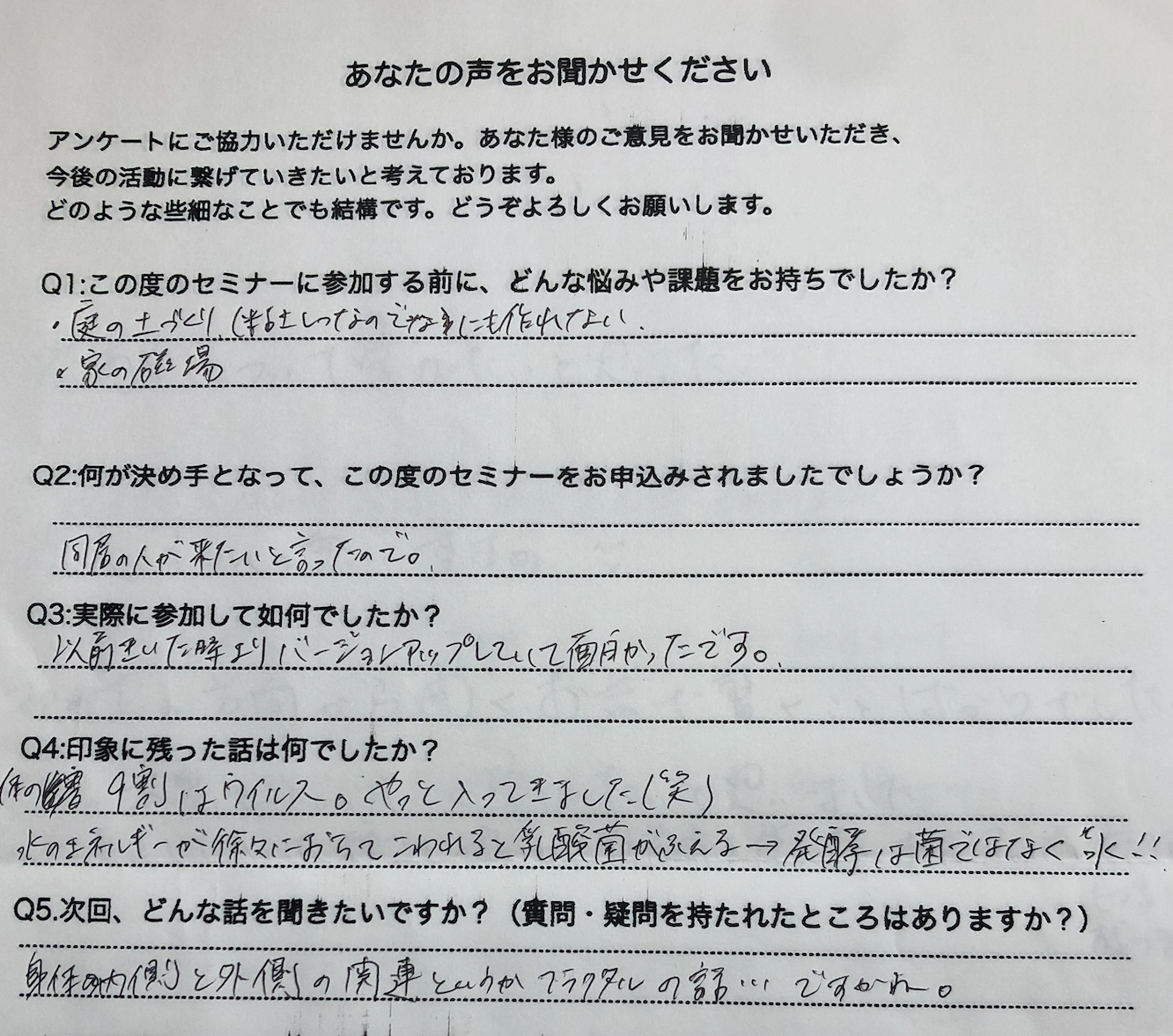 Hakkousha「発酵からみえる腸と命のあり方」お話会のご感想