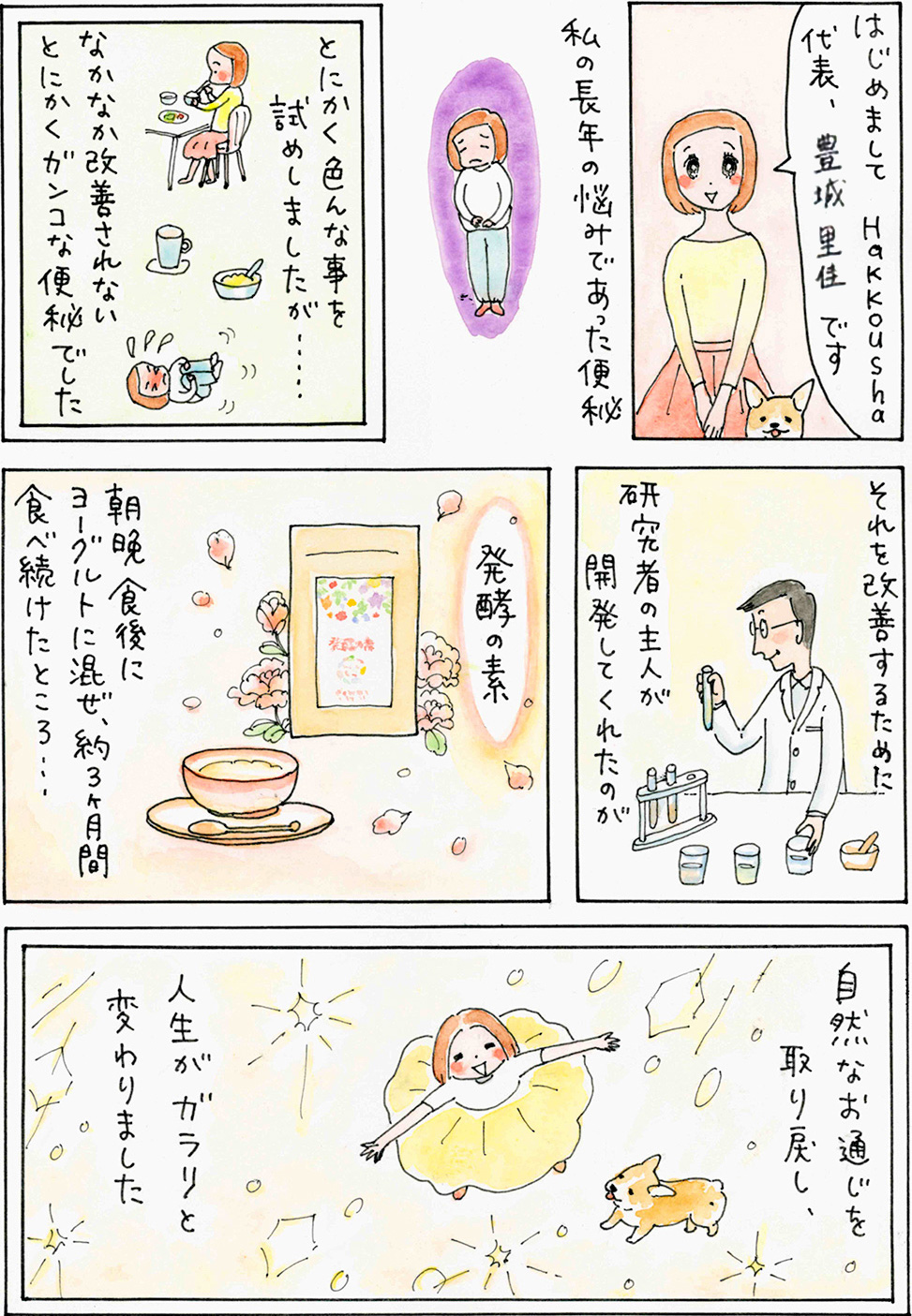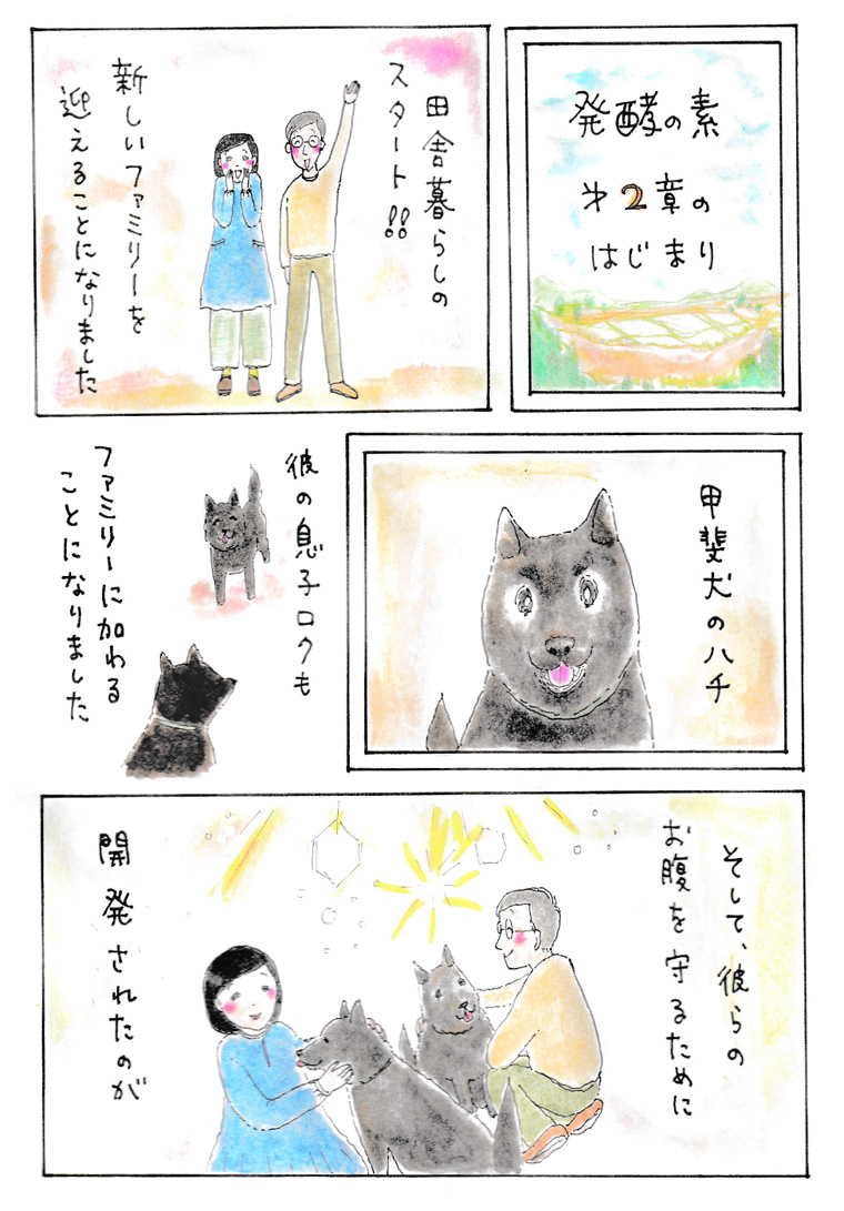 「発酵の素」は、私の⻑年の悩みであった便秘を改善するために主⼈が開発してくれたものです。